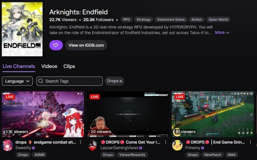 Какие Twitch Drops доступны для Arknights Endfield?