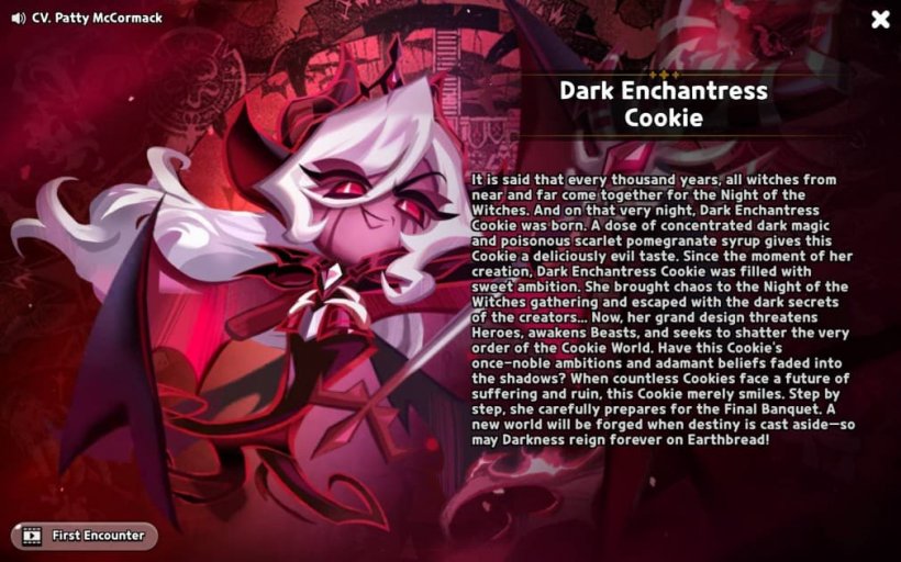Тёмная Волшебница Печенька – популярный персонаж в истории Cookie Run, и теперь игроки наконец-то могут управлять ею! Она невероятно древняя – настолько же старая, как и Ведьмы – и на самом деле является Ведьминской Печенькой, о чём мы расскажем подробнее позже.