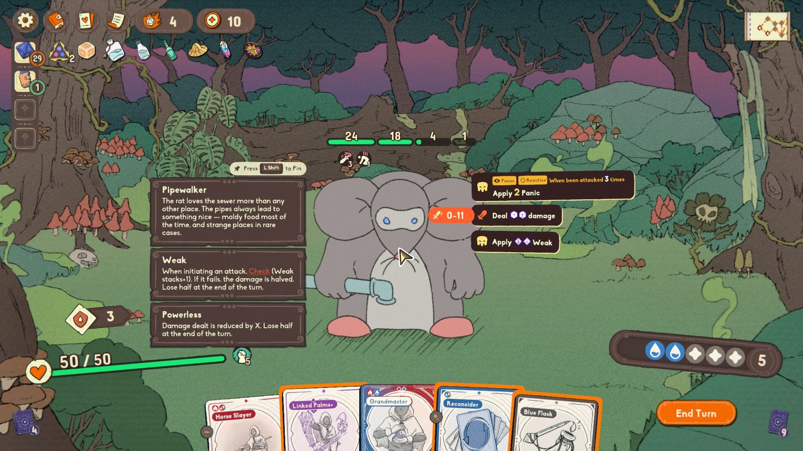 В этой игре вам не разрешается случайно перерабатывать кубики, когда вы захотите, вместо этого каждому перезаписыванию требуется либо конкретные карты, либо использование реликвии, которая перезаряжается между встречами. Тем не менее, это не означает, что у вас не будет достаточно возможностей для повторного сведения. Конструкция гарантирует, что существует достаточно сопротивления, чтобы предотвратить его стать монотонным. Например, канализационная крыса перед вами будет иметь сегменты здоровья вместо одного бара, поэтому вы не можете исключить ее одним выстрелом.