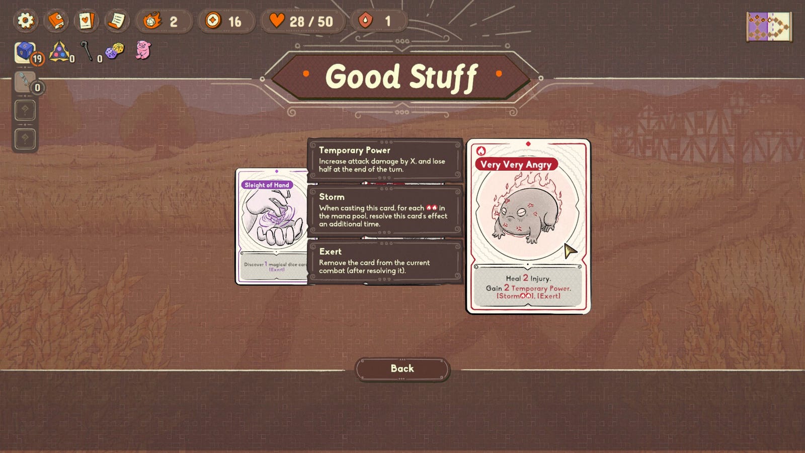 Я восхищаюсь целью нарушения соглашений, и реализация Diceomancer настолько хорошо сделана, что оно принесет у меня удовольствие. Если вы посмотрите внимательно, повсюду есть умные или юмористические элементы: например, произведение искусства карт отдает дань смерти, изображая человека с узнаваемой квадратной башней и переполненными мешками. Одно взаимодействие даже связано с участием в исследовании неприятия риска. Это довольно впечатляет!