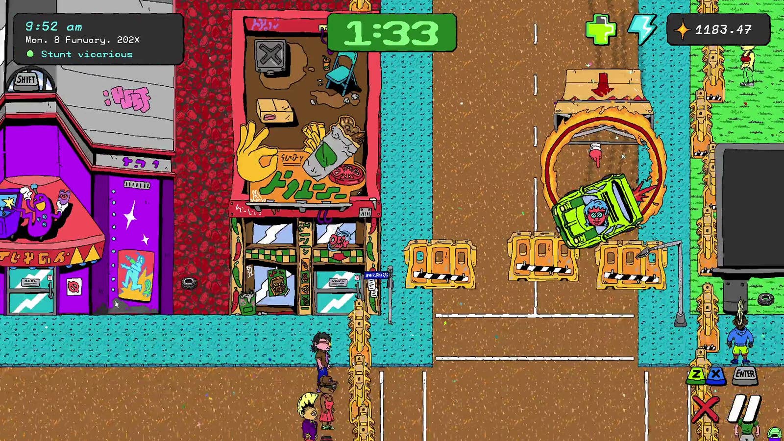 Вначале спрайты и дизайн с видом сверху в Dryft City Kyngs могут напомнить вам игры Grand Theft Auto 90-х годов, известные своей острой сатирой и сложным геймплеем. Однако, при более внимательном рассмотрении, игра оказывается на удивление расслабляющей по сравнению с мрачными городскими пейзажами Rockstar. Вместо типичной неолиберальной антиутопии, Большая Dryft City кажется утопией — нет видимой полиции, жители охотно делятся своими контактными данными, и даже городской совет перекрасит дороги в ваш любимый цвет в течение дня. Если вы попадете в неприятности, медицинские расходы вас не обременят, так как их можно добавить в бесконечный счет (хотя это некоторое преувеличение относительно системы социального обеспечения Австралии). Предупреждение для переходящих дорогу в неположенном месте — эта игра может позволить себе некоторые вольности с реальностью. Вы управляете персонажем, который бросил безопасную работу и теперь работает на монотонной, но легкой стажировке, чтобы поддержать свою настоящую любовь, Dryft.