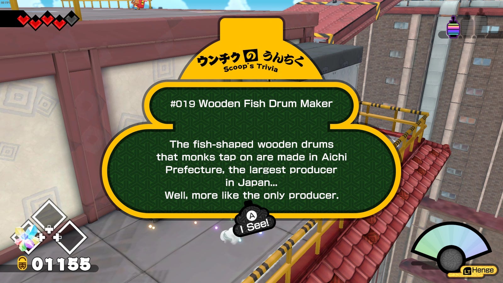 Для меня стало неожиданностью, что Бакеру не только хорошо разбирался в платформерах, но и служил инструментом, повышающим ваши шансы на участие в викторинах в пабах. Фактически, эта игра действует как машина времени для мелочей, предлагая понимание различных аспектов японской культуры и даже интересных фактов, например, о том, что сепия является разновидностью каракатиц.