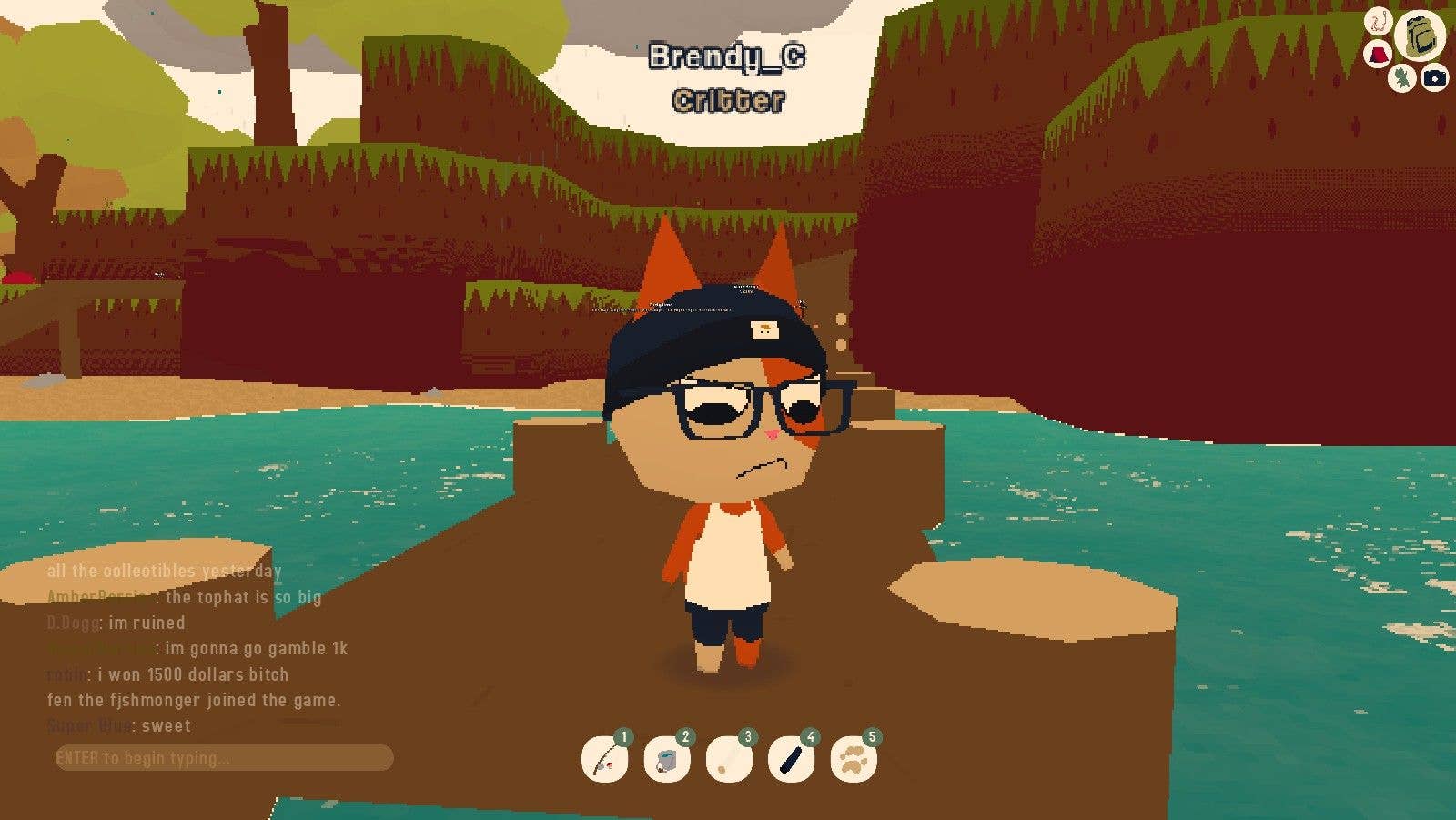 Проще говоря, эта игра представляет собой уникальную, очаровательную социальную зону, созданную на основе мини-игр о рыбалке, которые можно найти в большинстве MMO (многопользовательских онлайн-игр). Персонажи общаются, используя диалог, напоминающий Animal Crossing. Игроки могут изменять высоту и скорость голоса своего персонажа, а набрав «/wag» в чате, они могут заставить своих персонажей вилять хвостом. Вы можете купить мел, чтобы нарисовать рисунки на земле вокруг центрального узла. Есть различные музыкальные инструменты, которые вы можете настроить со своими аккордами, и бубны, чтобы немного пошалить.