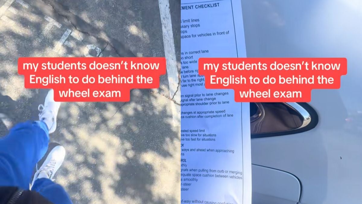 Урок вождения в Калифорнии был прерван, когда инструктор прекратил обучение, потому что ученица не понимала английский язык. Видео в TikTok показывает, как инструктор объясняет: ‘Мне пришлось остановить тест; она не могла понять мои инструкции. Просто скажите ей, что мы перенесём занятие. Она не понимала, что я говорю.’