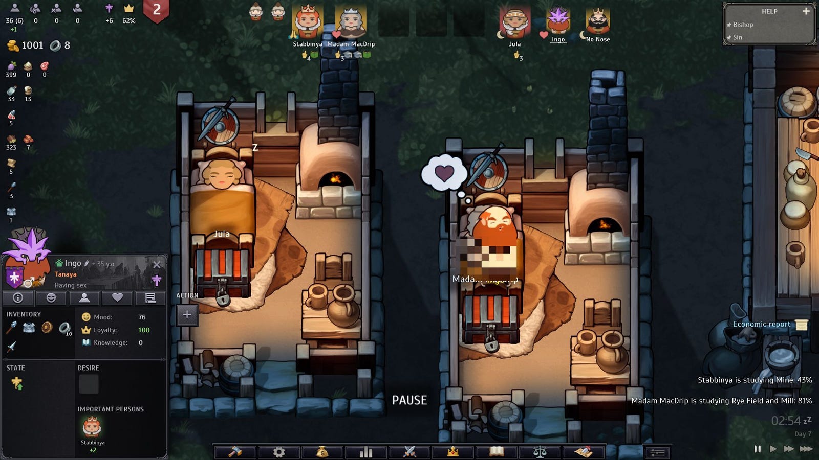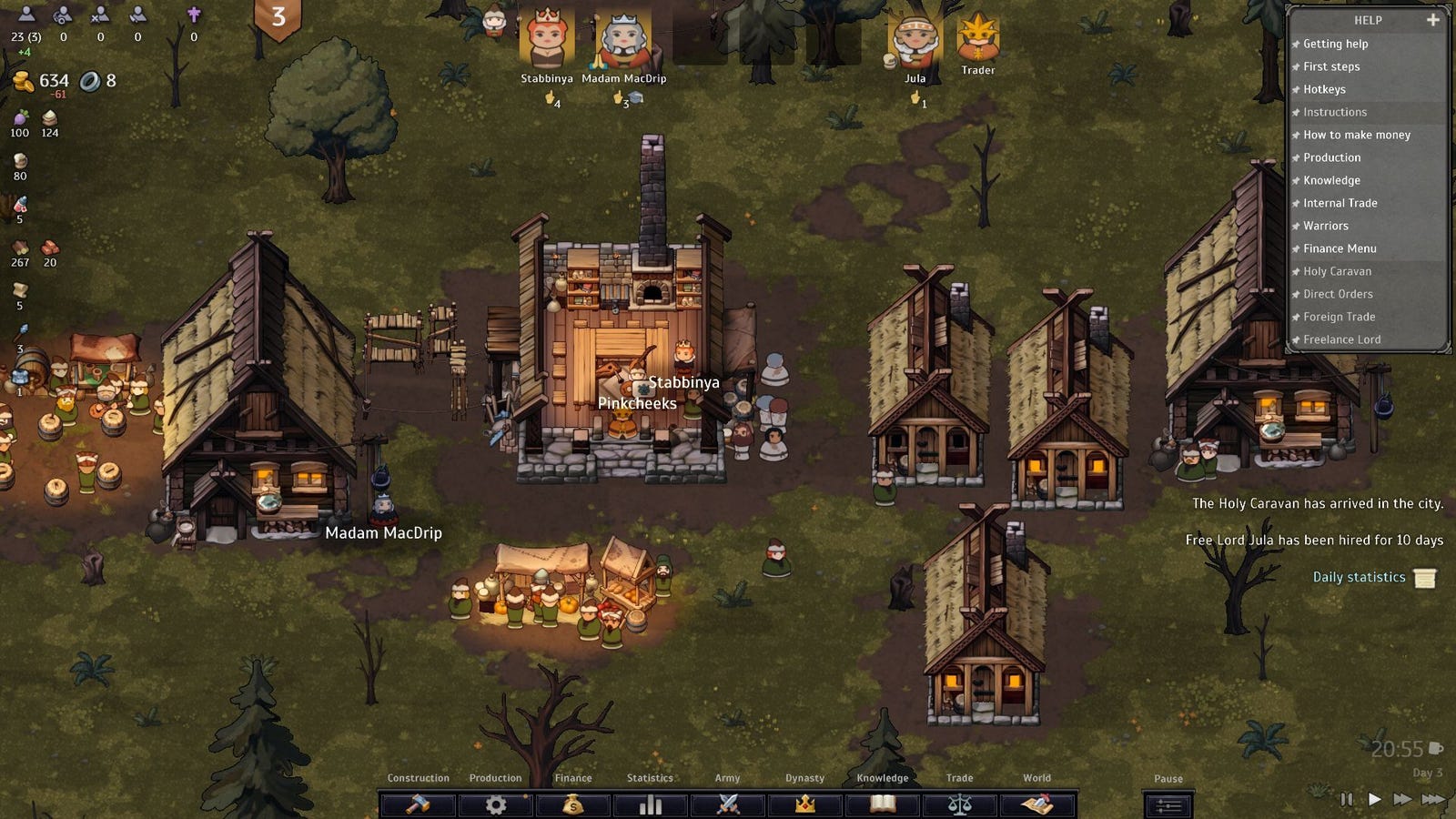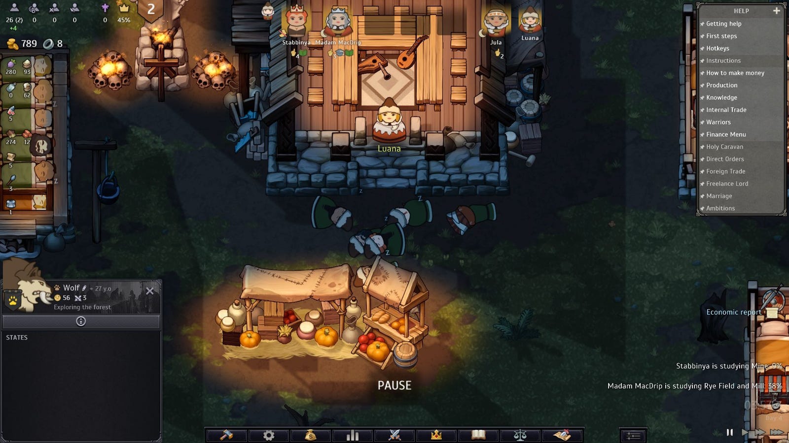 Проще говоря, прогресс в этом сообществе продвигается постепенно, благодаря периодическим визитам странствующих торговцев, продающих книги первой необходимости. Чтобы построить новые здания или произвести улучшения, вы должны сначала иметь книгу по этой теме и назначить лидера, который будет читать и усваивать информацию. Некоторые доступные названия: «Запугивание бродяг», «Правильное удобрение» и «Управление зависимостью». Как только ваш лидер приобретет новые знания, все сообщество пожнет плоды, такие как новые поля хмеля или способность эффективно готовить мясо. Однако имейте в виду, что если обладатель знаний умрет и никто другой не будет знать, как это сделать, сообщество потеряет возможность наслаждаться этими вещами. Сценарий катастрофы начинает обретать форму, не так ли?