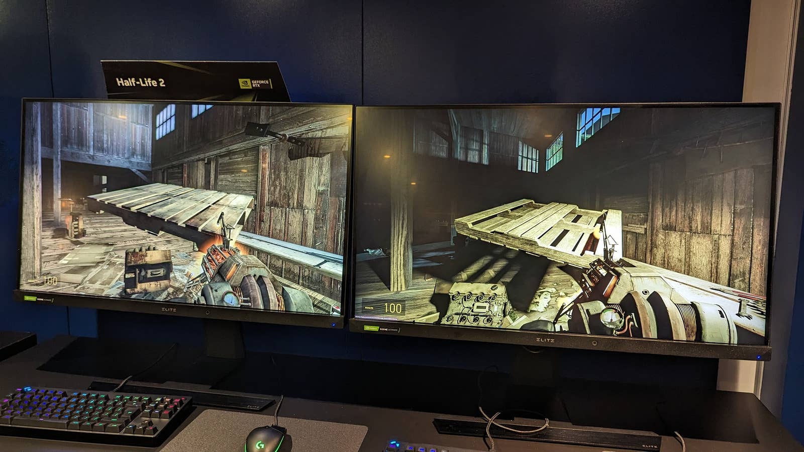Хочу уточнить, что я не против ИИ в целом, особенно когда речь идет об инновационных инструментах, разработанных Nvidia. Помимо генеративного искусственного интеллекта, они создали множество полезных и этически обоснованных приложений машинного обучения для геймеров и разработчиков. Например, отличными примерами являются DLSS для масштабирования изображений и Ray Reconstruction для мгновенного визуального улучшения. Хотя RTX Remix имеет свою долю модов разного качества, в целом он внес положительный вклад в сообщество. Хотя я использовал генеративный искусственный интеллект для моделей и текстур с более высоким разрешением, я никогда не сталкивался с проблемами в таких играх, как Portal, при использовании RTX. В отдельной демо-версии, расположенной неподалеку, я был впечатлен Half-Life 2 RTX, в которой было продемонстрировано сочетание созданных вручную моделей и обновлений освещения, а также изящных замен текстур, созданных искусственным интеллектом.