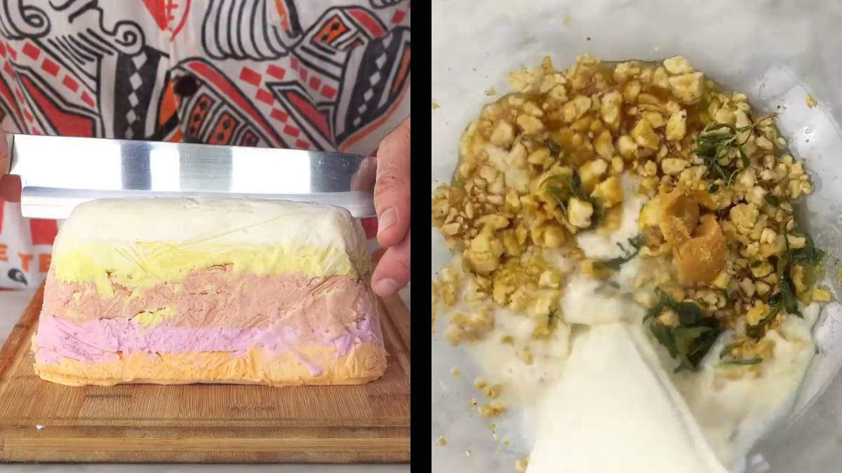 Пользователь Reddit с ником HomeSpark_Jen недавно опубликовал видео от инфлюенсера Craftwytch на subreddit r/StupidFood. Craftwytch стал широко известен благодаря тому, что превращает практически любую еду в мороженое, даже такие неожиданные вещи, как бекон. В этом году шеф-повар решил приготовить мороженое, которое бы на вкус напоминало полноценный праздничный ужин в честь Дня благодарения. Он объединил несколько вкусов, характерных для Дня благодарения, в четырехслойное мороженое: салат из картофеля, мед и халапеньо, тофу с ароматом индейки и клюквенный соус.