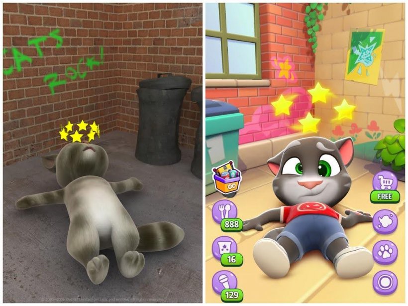 Поскольку мы большие поклонники этого классического приложения, мы создали сравнение, чтобы подчеркнуть, насколько Talking Tom эволюционировал с момента своего первого запуска. Мы хотели показать, как далеко он продвинулся от своей оригинальной версии!