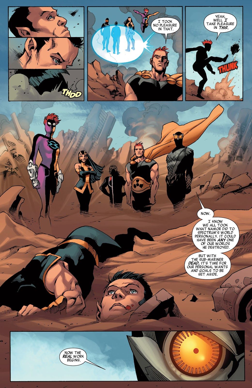 Группа уничтожила несколько планет, но Намор понял, что остальные зашли слишком далеко в разрушениях. Это произошло на одной из планет, которые они уже опустошили, непосредственно перед её полным уничтожением. Затем прибыли Иллюминаты, и Чёрная Пантера ударила Намора, намереваясь оставить его умирать там же.