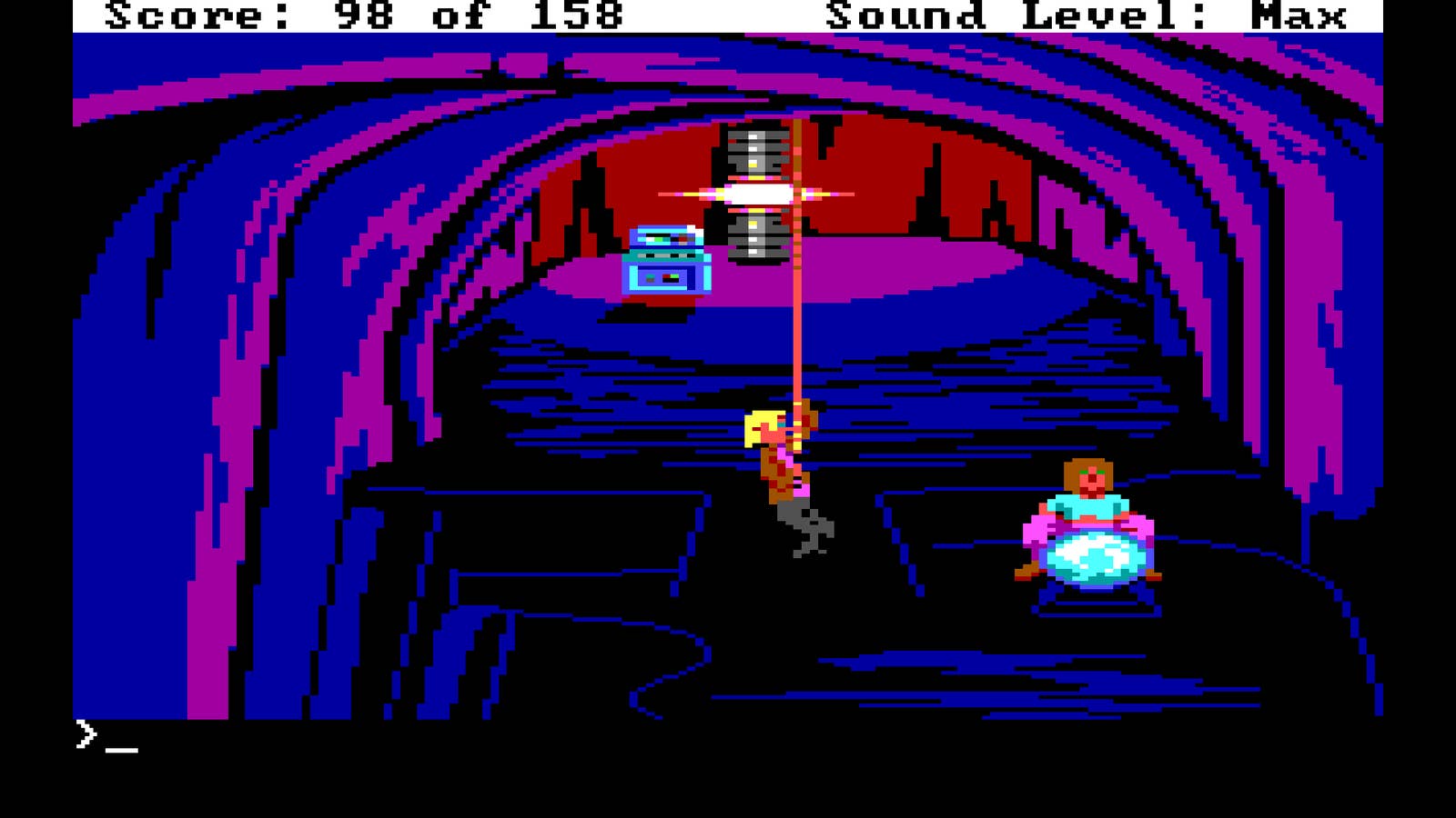 Как страстный поклонник этой интригующей приключенческой игры, я должен признать, что есть две мини-игры, которые прерывают исследование и ввод глаголов. Одна из этих игр является обязательной и требует от меня перемещать цветные объекты до тех пор, пока они не совпадут. Честно говоря, я мог бы обойтись без этой задачи, поскольку она напоминает мне о моих наименее любимых впечатлениях — когда мне приходилось решать сложную головоломку, например, кубик Рубика, прежде чем добиться прогресса в приключенческой игре. К счастью, в отличие от раздражающей игры Astro Chicken из Space Quest III, которую мне пришлось пережить, здесь эти мини-игры не так раздражают.