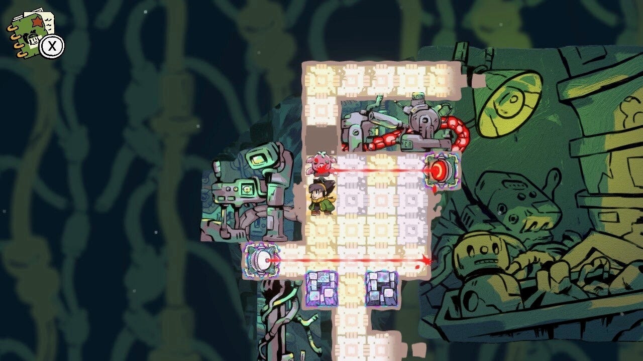 Головоломки также предлагают разнообразные задачи. Некоторые препятствия перекрыты стационарными блоками, поэтому вам нужно маневрировать вокруг них другими объектами и создавать конфигурацию для легкого прохождения. Статичные существа, напоминающие мармеладных монстров с испуганным выражением лица, мешают прогрессу, занимая ценные клетки; вы должны взаимодействовать с ними, размещая или перемещая мечи. Изначально мужчина просит вас постричь его нетрадиционный скот, выполняя ограниченное по времени задание. Это не типичные овцы. Кроме того, есть головоломки, требующие сотрудничества с другим персонажем, а также головоломки, в которых нужно украсть девочку из дома, одновременно манипулируя мебелью, чтобы скрыть ваши действия от ее родителей. К сожалению, в игре меньше битв с боссами, чем хотелось бы. В этих столкновениях вы должны расположить несколько элементов, ожидая, пока враг-осьминог/червь/капля будет готов, и в конечном итоге поразить его уязвимое место.