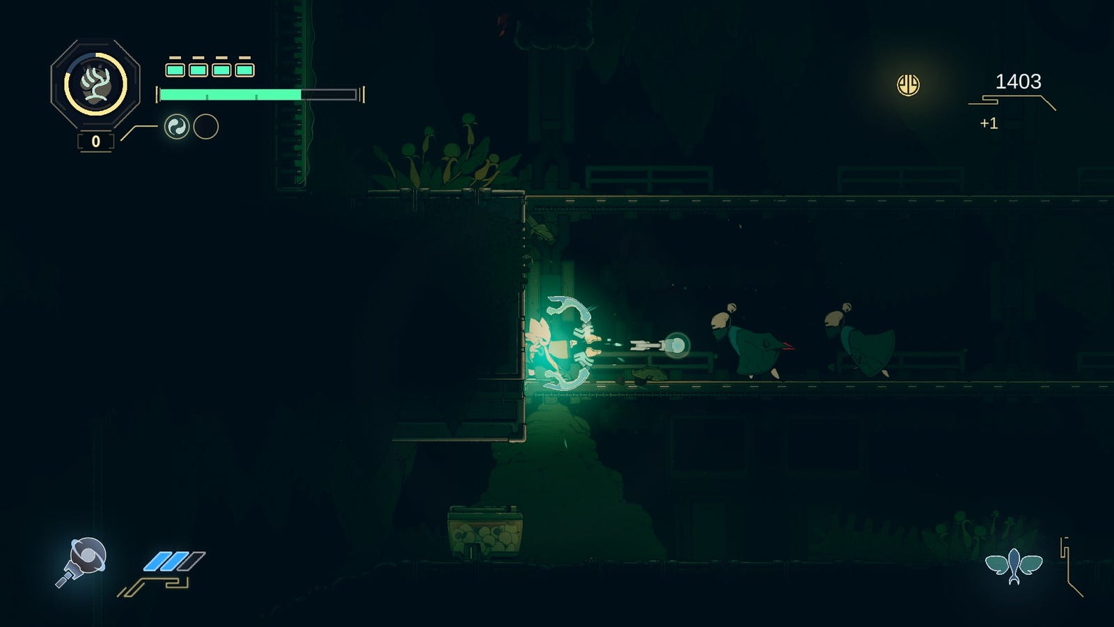К счастью, когда небеса плачут и образуются лужи, у вас есть разные альтернативы. Воздушный рывок, хотя его активация и требует много времени, расширяет репертуар защиты и мобильности Йи. Лук с ограниченным количеством стрел, которые пополняются каждый раз, когда вы достигаете корневого узла, служит вашей экстренной мерой контроля толпы. Тяжелая атака, хотя и медленная в подготовке, может быть начата во время уклонения, мгновенно выбивая защищенного противника из игры с помощью соответствующих улучшений. Усовершенствования и средства для дополнительных улучшений взяты из руководства Soulslike, которое требует посещения трупов или победы над предыдущими противниками, чтобы вернуть их после смерти. Когда Йи получает чрезмерный урон, он может использовать свою целебную трубку, очень похожую на вашу стандартную колбу душ. Тем не менее, есть определенный размах в том, чтобы дать Моксу возможность протрубить в трубу для быстрого выздоровления, как будто это просто еще один элемент в последовательности комбо, в отличие от поспешного глотка эстуса.