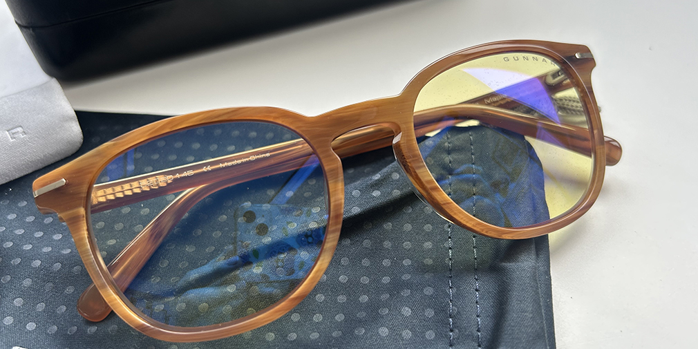 The Gunnar Davis glasses come with a thick, very durable case that is slightly rectangular, along with a protective pouch and microfiber cloth. All of their glasses also come with a 12-month warranty, in case something were to happen to them. They are made of very high-quality materials, so we have not had any issues, and they have a smudge-resistant coating on the lenses as well.