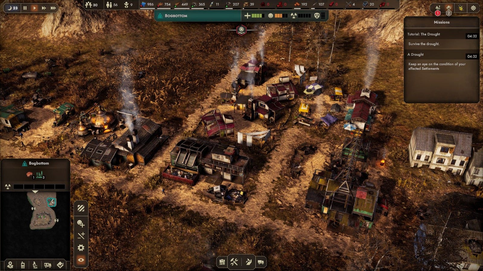 Во времена неожиданной засухи или широко распространенной болезни, которые ставят под угрозу баланс в ваших идиллических сельских регионах, вы можете тщательно корректировать торговые сети, чтобы гарантировать, что Гримдоркские озера получают необходимые лекарства из соседних городов, одновременно обеспечивая достаточное водоснабжение Гарбаджвилля. Когда наступает опасная погода, небольшой счетчик Гейгера показывает уровни радиации, с которыми сталкиваются ваши жители. Кроме того, будьте бдительны в отношении почвы, поскольку она также может быть заражена радиацией.