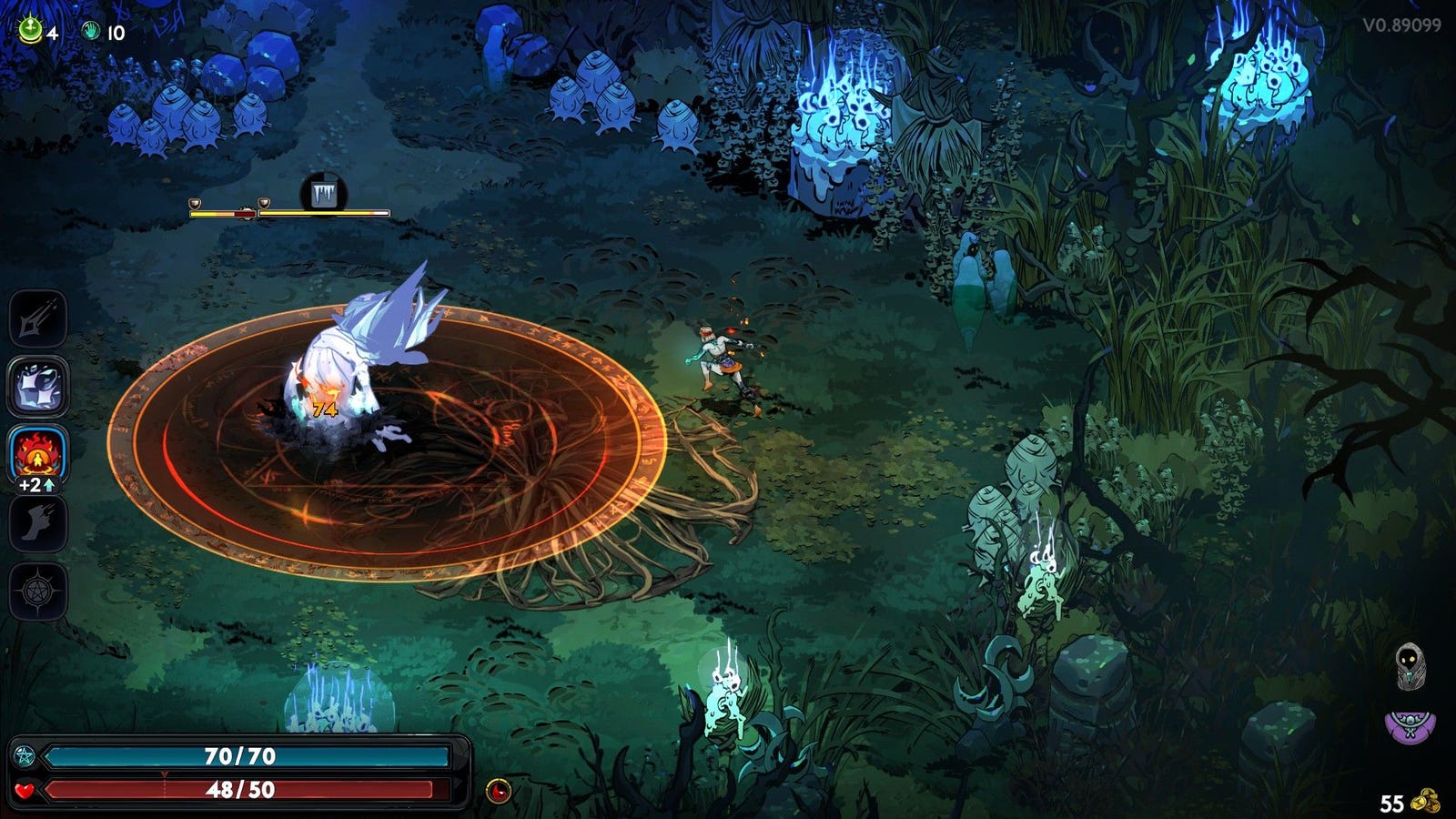 Я понимаю ваше беспокойство по поводу жестокого характера игры. Позвольте мне пояснить, что каждая атака имеет улучшенную версию, что дает в общей сложности четыре атаки на одно оружие (если мы также учитываем рывок). Эти мощные атаки «омеги» потребляют магическую энергию, добавляя еще один уровень к вашему стратегическому выбору во время вашего путешествия по подземному миру. Лично я считаю, что широкомасштабная и изнурительная способность Мелиноэи Cast особенно эффективна для меня.