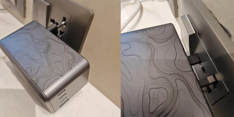 Этот адаптер довольно тяжёлый, из-за чего он провисает на одну сторону. Мне пришлось искать по всему дому розетку в нужном месте, чтобы даже протестировать его. Он не очень универсален, и это может стать реальной проблемой во время путешествий, когда у вас нет лёгкого доступа к розеткам.