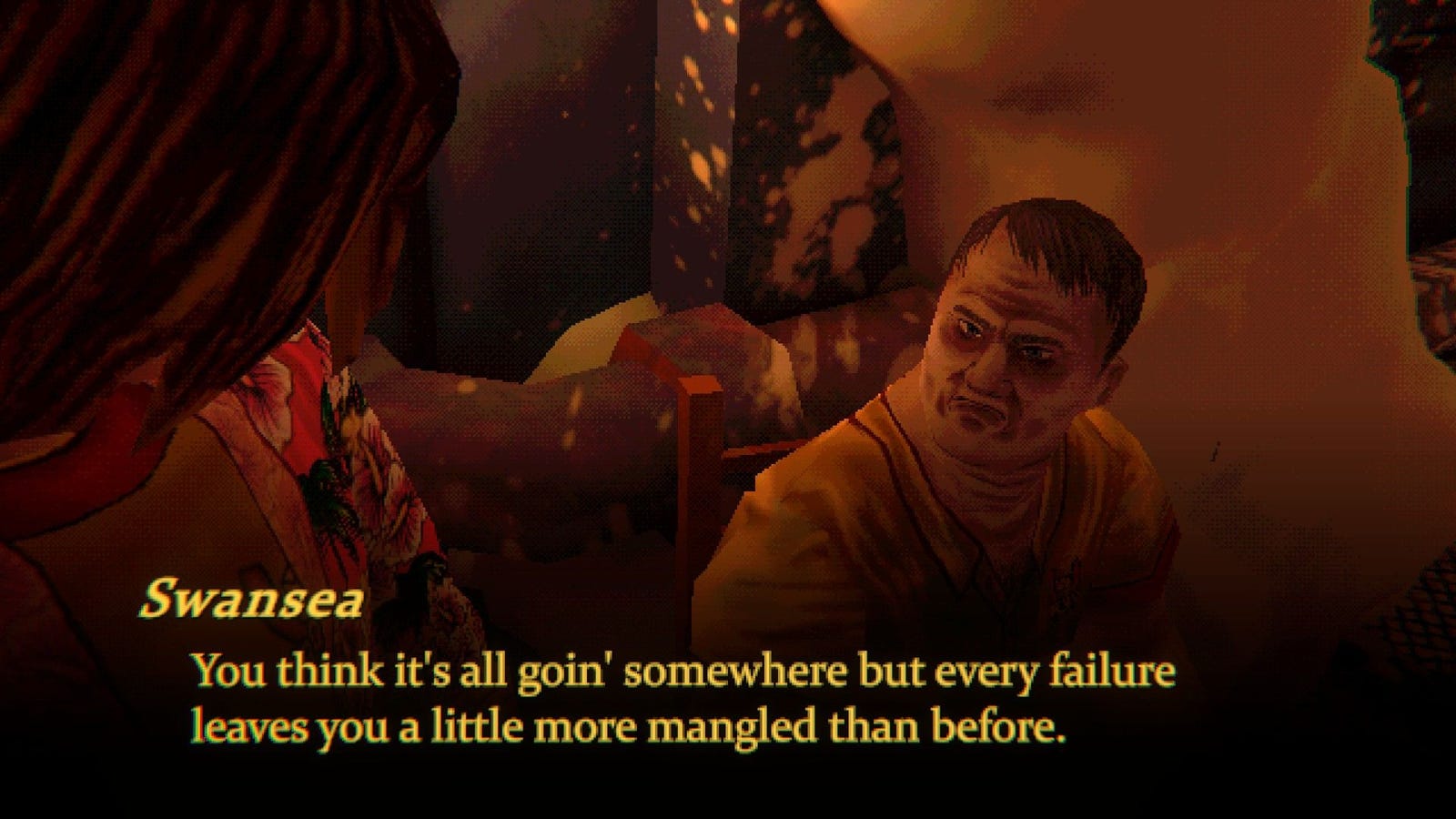 Повествование в этой игре чередуется между событиями до и после аварии, которые могут длиться от нескольких минут до месяцев спустя. Персонажи спорят и размышляют, обсуждают перспективы на будущее или ведут напряженные диалоги. В этой истории пронизывает предчувствие дурного предчувствия, подчеркнутое жуткими визуальными эффектами, напоминающими эпоху PlayStation 1, и исключительным саундтреком. Иногда игра зависает или текст на экране искажается. Игра может внезапно крикнуть «БЕРИТЕ ОТВЕТСТВЕННОСТЬ», оставив вас в недоумении по поводу его смысла.
