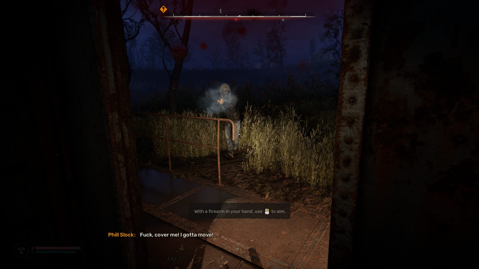 Это представляло собой проблему, поскольку мое предстоящее взаимодействие будет происходить с группой бандитов, которые, похоже, обладали исключительным ночным зрением из-за радиоактивной водки, которую они употребляли, и сразу же заметили меня, когда я пытался прокрасться мимо. Затем я побежал к ближайшему болоту, а их пули свистели в мутной воде рядом со мной, и мне удалось доплыть, хотя и с несколькими новыми пулевыми отверстиями в моем теле, в корпус выброшенной на берег лодки.