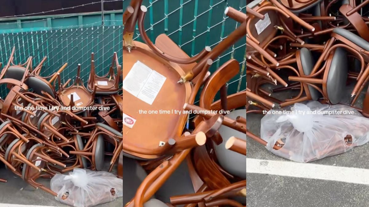 Женщина была удивлена и расстроена, обнаружив полный комплект обеденных стульев из ресторана Stanley & Seafort’s в Такоме, штат Вашингтон, выброшенными на утилизацию. Она сняла TikTok-видео, объясняя, что, что для нее необычно, решила забрать несколько стульев из мусорного бака.
