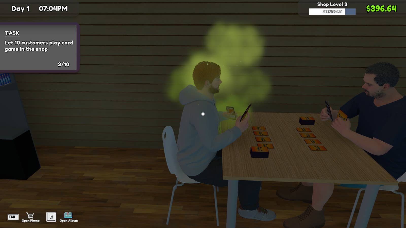 В этой игре вы получите цифровой блокнот для хранения карточек, который служит второстепенной целью наряду с основными задачами управления. Вы сможете добавлять премиум-бустеры только после того, как обновите свой магазин. Попутно вы также приобретете различные украшения, столы для игры и тому подобные предметы. В игре есть что-то интересное: у некоторых клиентов есть большие мультяшные вонючие облака, которые могут повлиять на впечатления других клиентов. Я думаю, что это был упущенный шанс для мини-игры, похожей на Powerwash Simulator.