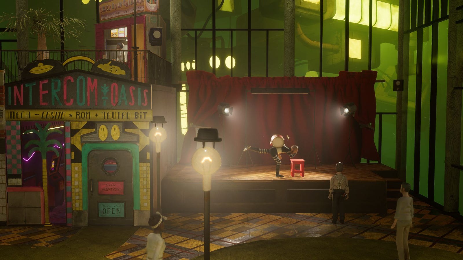 Как поклонник этой уникальной вселенной, я бы описал атмосферу района Федора как захватывающую смесь научной фантастики 70-х и очарования DIY. Яркие цвета напоминают о той эпохе, а бессистемная конструкция добавляет ощущение неряшливости и небрежности. Каждый раз, когда я вхожу в какой-либо район или покидаю его, меня встречают освежающим брызгом дезинфицирующего средства из старинной металлической насадки для душа, что добавляет еще один слой в этот интригующий мир.