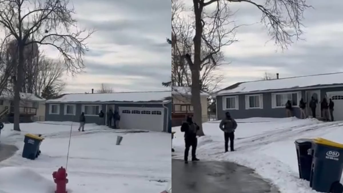 На видео показано пять агентов перед домом, а еще двое ждут у своей машины. Один агент постучал в дверь, пытаясь связаться с жителем. Затем оператор из Миннесоты раскритиковал агентов за то, что они продолжают носить маски, но они не ответили и продолжали пытаться добиться того, чтобы кто-нибудь открыл дверь.