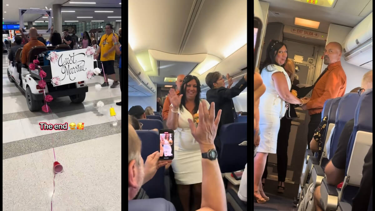 После быстрой церемонии пара села на рейс Southwest Airlines вместе со многими пассажирами, которые не подозревали, что собираются стать частью свадьбы на высоте 30 000 футов.