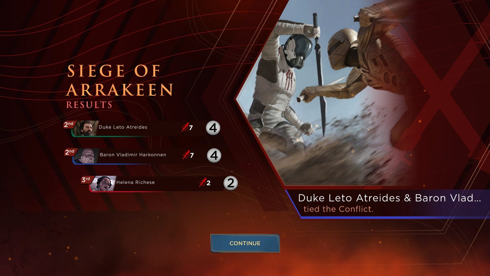 Победителем становится только один, но это не ситуация «выигрыш-проигрыш» (разделение приза за второе место после ничьей добавляет интриги). Набрать достаточно очков, чтобы оставаться конкурентоспособными, непросто, и камбэки – обычное дело. ИИ демонстрирует замечательные навыки в накоплении победных очков по ходу игры, что добавляет азарта. Несмотря на глубокое впечатление от адаптации, я должен признать, что она не полностью отражает суть оригинального романа «Дюна».