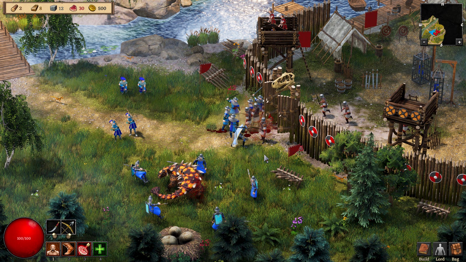 По сути, вы в первую очередь управляете одним героем, который был назначен защитником королевства после того, как хитрые датчане достали динозавров из ледяных шапок Гренландии. Вы руководите его действиями, используете навыки из его интерфейса небольшой ролевой игры (ARPG), и самое главное, ваш взгляд постоянно прикован к его голове благодаря фиксированной изометрической камере. Хотя вы руководите строительством зданий и стен замка, командуете войсками для защиты от атакующей орды (что сохраняет ощущение стратегии в реальном времени (RTS), ваша точка зрения никогда не меняется.