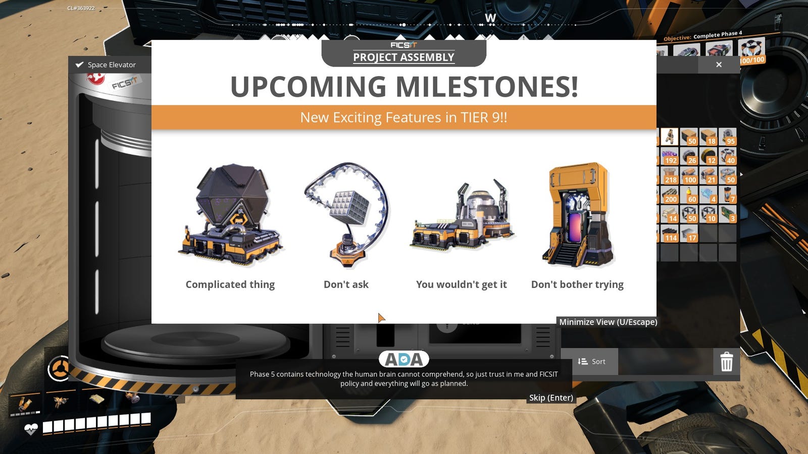 Это все так ощутимо. Именно это ставит его выше Factorio и Dyson Sphere, хотя оба они сами по себе потрясающие. Вид от первого лица является частью этого, но аналогичное ощущение конкретного вознаграждения существует и на структурном уровне (фабричная шутка). Вы не вкладываете ресурсы в машины, занимающиеся наукой: вы производите определенное количество деталей для достижения определенной цели, будь то запуск следующего этапа Проекта или открытие новой опоры.