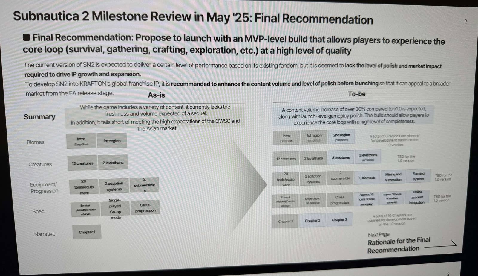 На выходных спор обострился между тремя бывшими разработчиками Subnautica 2 и их издателем Krafton после того, как внутренний документ о сокращении масштабов survival игры во время разработки был выложен в интернет. Происхождение этого документа остаётся неясным. Несмотря на многие подробности об этом документе, оставшиеся нераскрытыми, Krafton воспользовался возможностью проверить его подлинность.