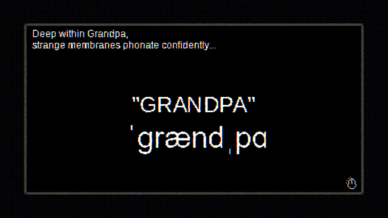 несвежие кешью, коричневые бананы, изоляция из стекловолокна и другие необычные варианты. И да, со временем ваш дедушка разовьет способность говорить. Обнаружив исследовательские записи, вы сможете научить его новым словам с помощью увлекательной мини-игры, в которой рассказывается о мягкой текстуре его горла. После этого вы сможете пообщаться с ним на эти темы и послушать его увлекательные истории из жизни.