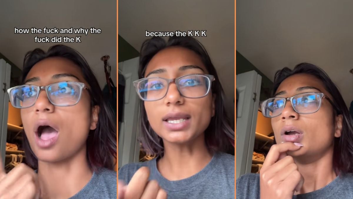 Окей, я только что увидел это сумасшедшее TikTok от @shagisabadword. Эта женщина направлялась в местную мэрию, потому что стала свидетелем чего-то действительно тревожного. Оказывается, она была на Хэллоуинском параде в Mechanicsburg, Pennsylvania – да, это реальное место! – и увидела настоящих членов KKK. И послушайте, это были женщины в KKK, раздающие листовки всем, даже детям! Было очень жутко на это смотреть.