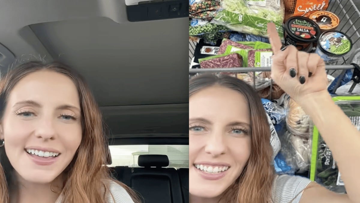 Эшли опубликовала фотографию в TikTok, показывающую её продукты. Это был не огромный улов – просто достаточно на несколько приёмов пищи, возможно, на неделю или две. У неё были такие вещи, как шпинат, бублики, торт, гамбургер, сальса и готовые салаты – довольно типично для того, что семья ест за несколько дней.